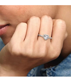 44,10 € -10% 49,00 €Anillo Corazón Solitario Transparente Inclinado Pandora en plata de primera de ley, adornado con una circonita cúbica transparente en forma de corazón.