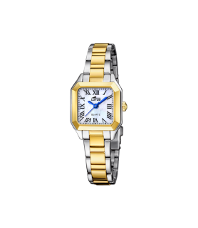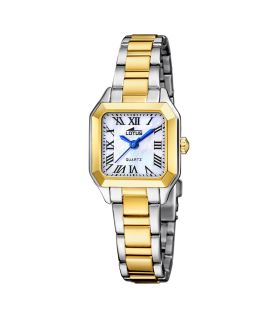 129,00 €Reloj Lotus colección Square 18969/1, analógico para mujer, con movimiento de cuarzo, 3 agujas y brazalete de acero bicolor, de tipo armys, con cierre desplegable con pulsadores. La esfera es en color blanco, la caja en acero con bisel liso chapado en oro amarillo. Tiene una resistencia al agua de 50 metros.