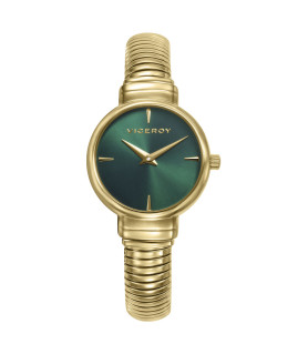 Reloj de Mujer Viceroy Chic 401314-67, dos agujas, caja de acero Ip dorado de 31 mm y esfera en color verde. Brazalete combinado tipo joya y eslabones en acero Ip dorado y con cierre de joyería. Fondo a presión y sumergible a 3 ATM.