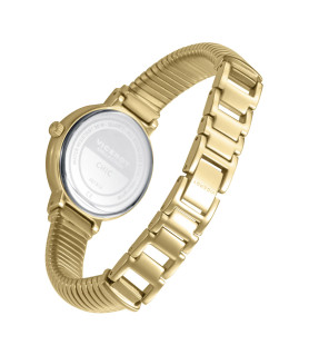Reloj Viceroy Air 42448-07, analógico para mujer, de dos agujas, presenta la caja en acero Ip dorado, al igual que el brazalete, ofrecen un toque moderno y refinado. La esfera en color blanco, con una circonita a las 12 horas, añade un matiz delicado y femenino, creando un conjunto armonioso y atractivo.