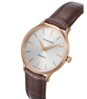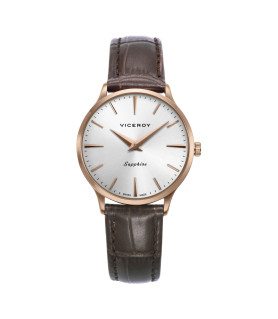 238,50 € -10% 265,00 €Reloj de Mujer Viceroy Swiss Made 45116-87, maquinaria de cuarzo suizo, dos agujas, caja de acero bañado en oro rosa de 32 mm con bisel liso en el mismo tono y esfera en color plateado. Brazalete de piel labrada en color marrón y con cierre de hebilla. Fondo a presión y sumergible a 5ATM.