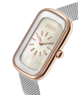 179,00 €Reloj Tous S-Mesh Mirror esterilla platedao y rosa para mujer 3000132100, modelo de caja redonda en acero chapada en oro rosa y brazalete de acero de tipo malla milanesa. Fondo degradado en plateado (como un espejo).