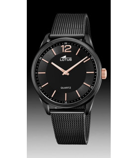 139,00 €Reloj Lotus Chrono 18700/1, analógico para hombre con movimiento de cuarzo, 3 agujas, cronógrafo y brazalete de acero Ip negro de malla milanesa, con cierre de deslizante. La esfera es en color negro y la caja al mimo tono que el brazalete. Tiene una resistencia al agua de 50 metros.