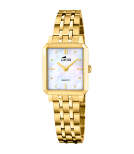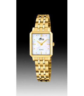 129,00 €Reloj Lotus colección Old Money 19009/1, analógico para mujer con movimiento de cuarzo, 2 agujas, caja rectángular y brazalete de acero dorado de tipo armys. La esfera es de nácar. Tiene una resistencia al agua de 50 metros.