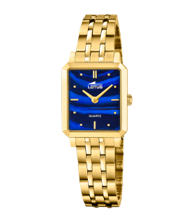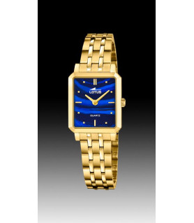 129,00 €Reloj Lotus colección Old Money 19009/2, analógico para mujer con movimiento de cuarzo, 2 agujas, caja rectángular y brazalete de acero dorado de tipo armys. La esfera es de color azul. Tiene una resistencia al agua de 50 metros.
