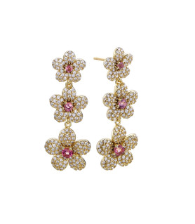 148,50 € -10% 165,00 €Pendientes Sposata de Duran Excuse 00513986, de plata de ley de 925 milésimas con baño de oro amarillo, largo, triple flor con pavé de circonitas y detalle central rosa.