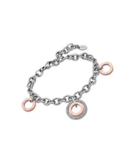 30,60 € -10% 34,00 €Pulsera Lotus Style LS1780-2/2 en acero inoxidable 316L, con motivo en forma de 2 aros entrelazados, uno de ellos montado con circonitas sobre acero rosado y el otro en acabado brillante.