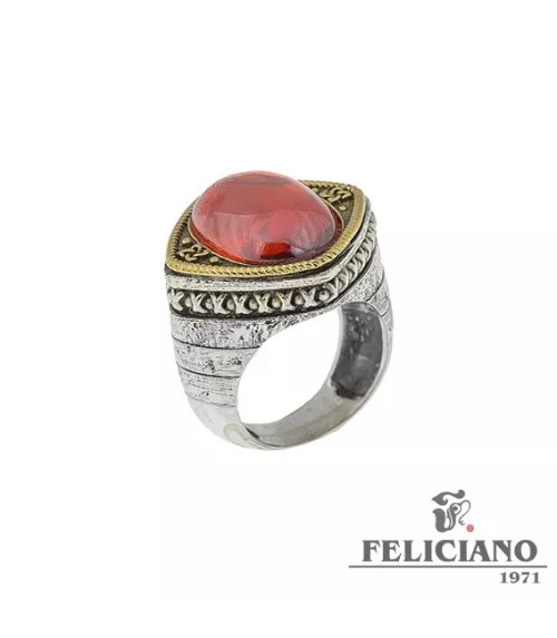 ANILLO EN PLATA Y BRONCE CON PIEDRA