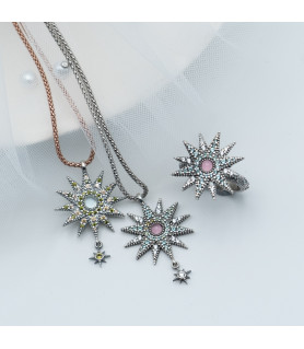 76,50 € -10% 85,00 €Colgante Sunfield Celia Hirta, en plata. CL065210, colgante de plata de ley en forma de flor, de 1 cm de diámetro. Destaca el cabujón central de 5 mm en cuarzo rosa facetado, rodeado de circonitas talla brillante de 2 mm en colores menta y vino.