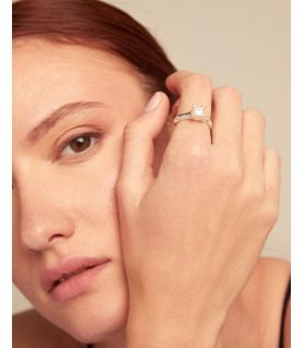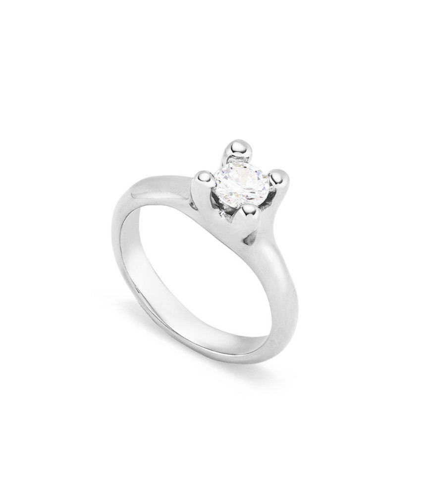 Anillo Cosmos UNOde50 ANI0804BLNMTL,anillo hecho de metal bañado en plata que combina un cristal artesanal de pequeño formato en blanco y garras de gran tamaño que sujeta el cristal y destaca la importancia de la plata.