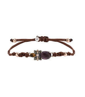 134,10 € -10% 149,00 €Pulsera Nathalie Miroir PU065551/26, pulsera de macramé marrón con lazada marinera, pieza central ovalada y con cabujón de turmalina ovalada rosa y piedras multicolor combinadas.