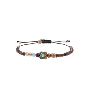 121,50 € -10% 135,00 €Pulsera Claire Fleur PU065560/2, pulsera ajustable artesanal con cuentas pulidas y motivo central en plata, en tonos marrones con flor de cuarzo rosa y aguamarina.