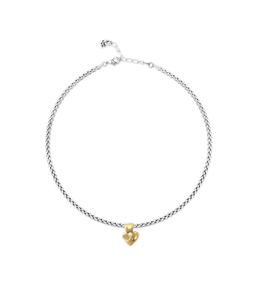 Collar Pálpito UNOde50 COL2074OROMTL0U, con cadena bañada en plata y con detalle de corazón pequeño bañado en oro 18k.