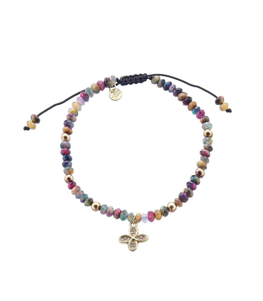 Pulsera Pantone de Duran Exquse 00513483, en plata de ley 925 milésimas con baño de oro amarillo, con multi zafiros de colores y con una flor con pave colgando del centro de la pulsera.