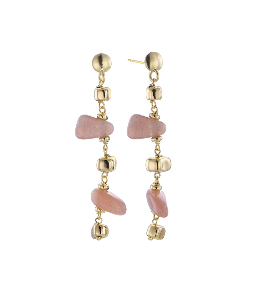 Pendientes Casablanca de Duran Exquse 00513493, en plata de ley 925 milésimas con baño de oro amarillo, con piedra luna en color rosa.