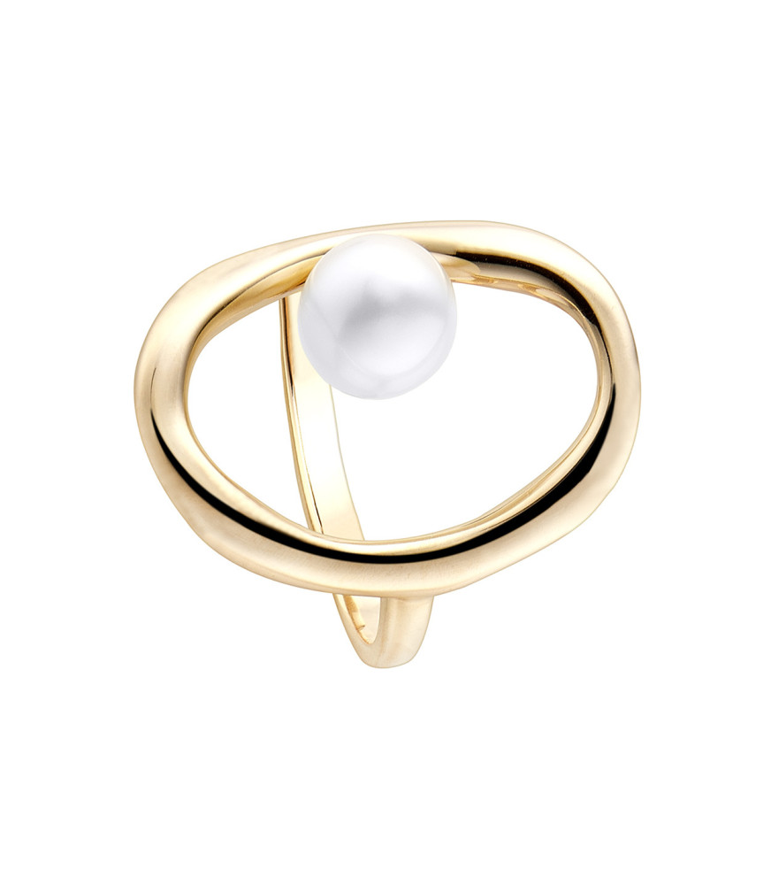 Anillo Coco de Duran Exquse 00510059, en plata de ley 925 milésimas con baño de oro amarillo, con perla desplazada en uno de os lados del anillo.