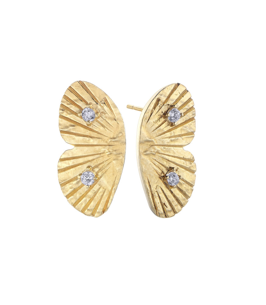 Pendientes Simetria de Duran Exquse 00513477, en plata de ley 925 milésimas con baño de oro amarillo, con forma de mariposa, con textura, detalle de circonitas.
