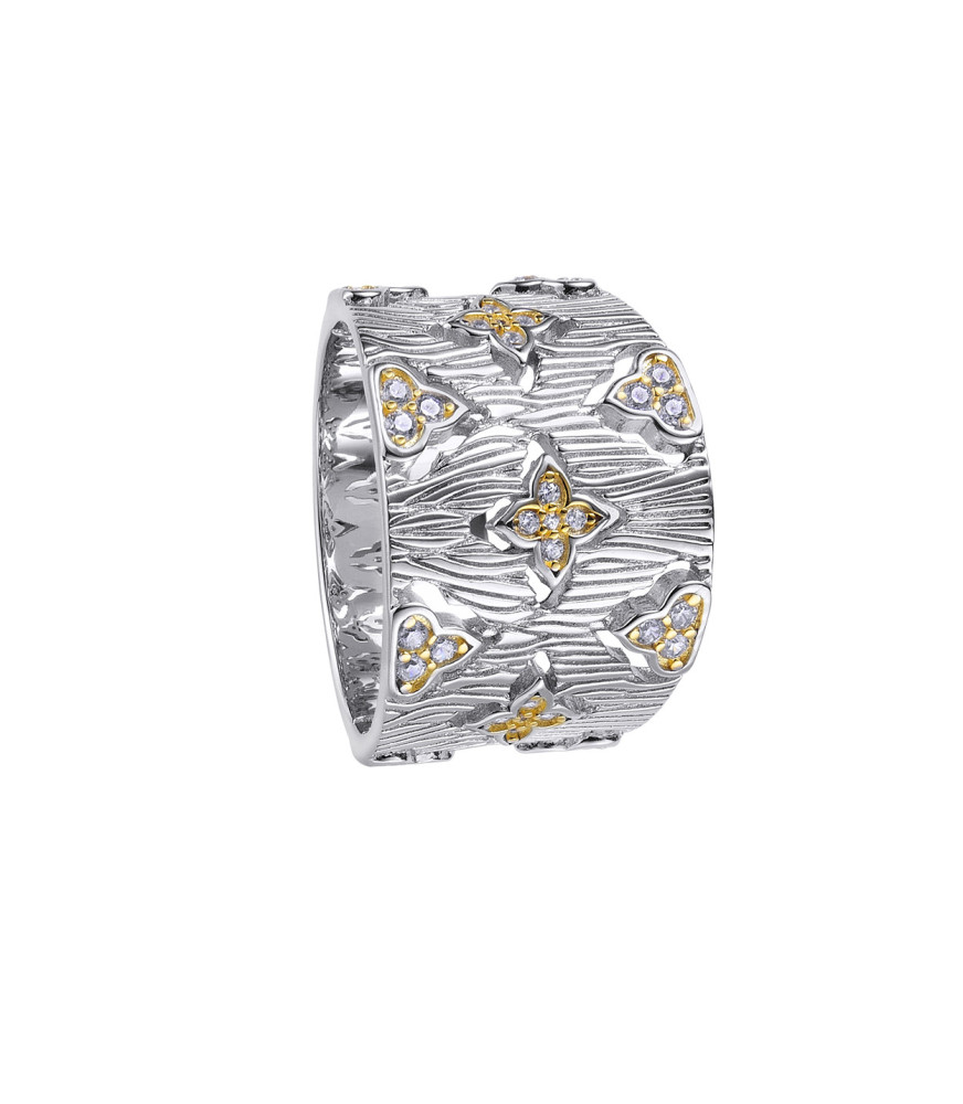 Anillo L'Etoile de Duran Exquse en plata. 00513631, en plata de ley 925 milésimas con baño de rodio y con detalle de estrellas con volumen en dorado.