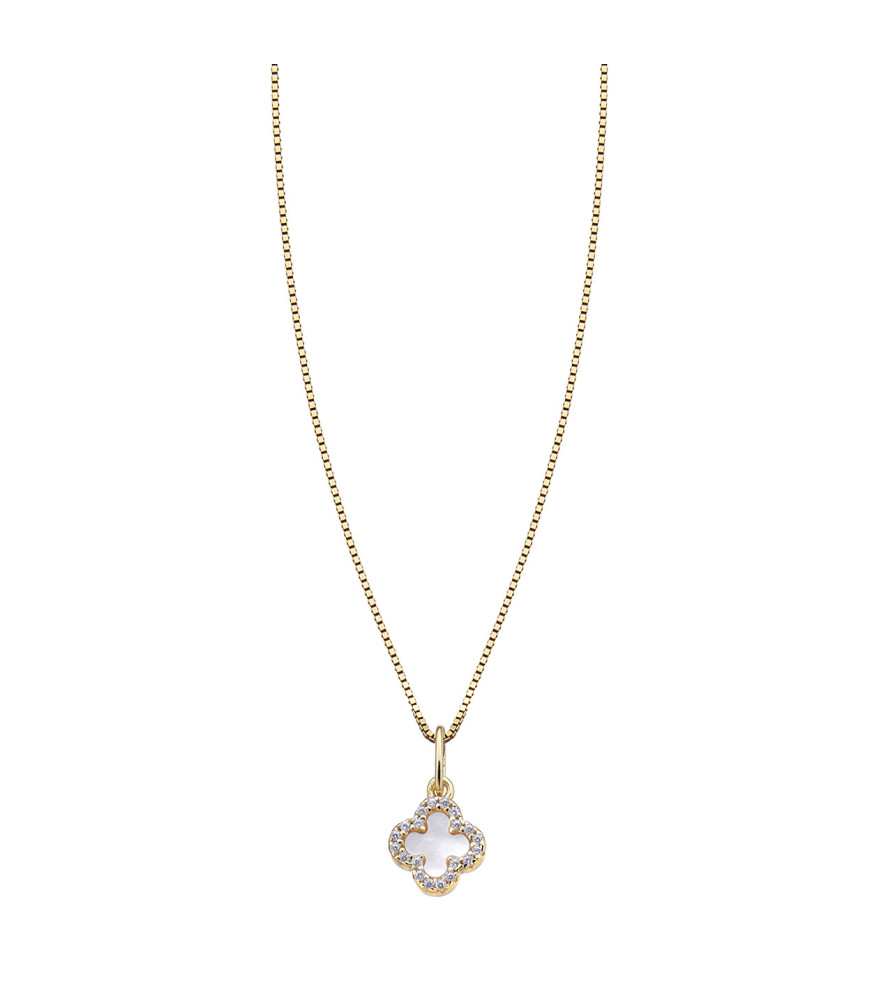 Colgante Caprichos de Duran Exquse 00512893, en plata de ley 925 milésimas con baño de oro amarillo, con un colgante en forma de flor de madreperla y pave de circonitas en el bisel del colgante.