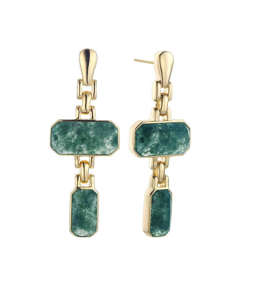 Pendientes Edición Limitada de Duran Exquse 00513570, largo, en plata de ley 925 milésimas con baño de oro amarillo, dos ágatas de musgo combinado con eslabones tipo panter.