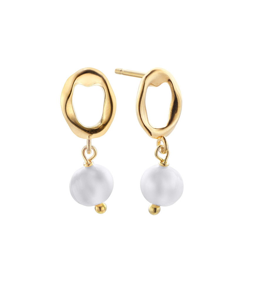 Pendientes Pearl de Duran Excuse 00513909, de plata de ley de 925 milésimas con baño de oro amarillo, perla y eslabón irregular.