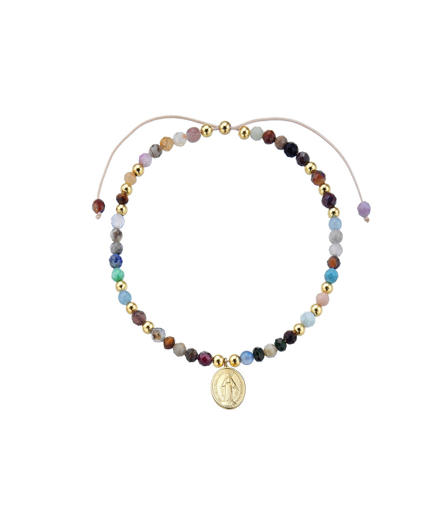 Pulsera Pantone, de Duran Exquse 00513154, con piedras multicolor, medallita de la virgen en plata de ley 925 milésimas con baño de oro amarillo y piedras multicolor.