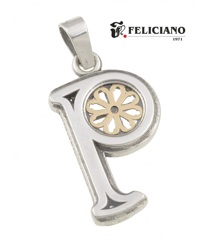 Colgante P pequeño, realizado en plata de 925/000 y rosetón en oro de 18k.