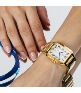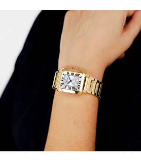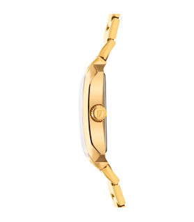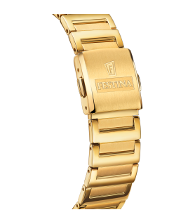Es una verdadera joya de la relojería. Su caja de acero en color dorado y su cristal mineral de alta calidad, lo convierten en una pieza única y exclusiva. Además, su brazalete de acero al mismo tono en color dorado, le aporta un toque de sofisticación y elegancia que lo hace perfecto para cualquier ocasión.
