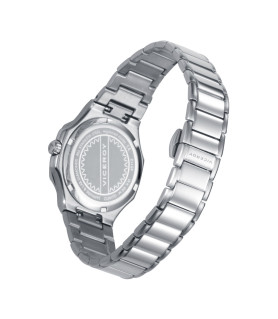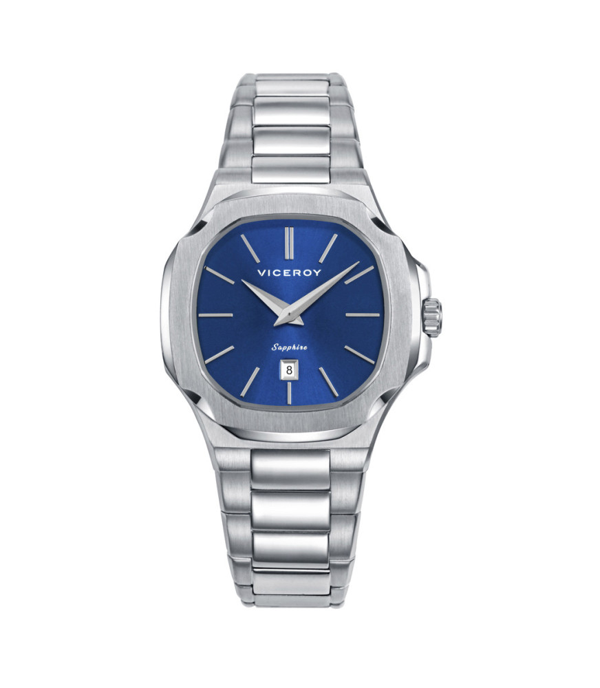 Con una caja en forma octogonal, de acero extraplana que incorpora un doble bisel en plateado, este modelo destaca por su diseño refinado y su resistencia de hasta 10 atm. Su esfera azul se complementa armoniosamente con índices y agujas en tono IP plateado, creando un contraste delicado y femenino. El cristal de zafiro añade un toque de durabilidad y brillo, mientras que el brazalete de acero asegura un ajuste cómodo y seguro. Además, cuenta con un práctico calendario a las 6 que aporta funcionalidad sin sacrificar estilo. Sumergible 10 ATM.