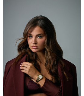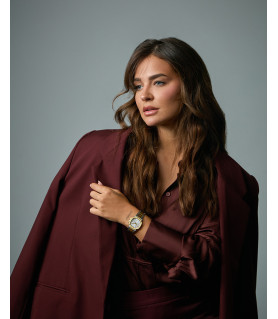 Su diseño se caracteriza por una caja en forma octogonal, de acero extraplana que incorpora un bisel en acero Ip en dorado. La esfera es en tono plateado, con índices, agujas en Ip dorado y calendario. El cristal de zafiro proporciona durabilidad y protección, asegurando una claridad impecable. El brazalete de acero combinado, en dorado y plateado, añade un toque clásico, garantizando un ajuste cómodo y seguro para cualquier ocasión. Sumergible 10 ATM.