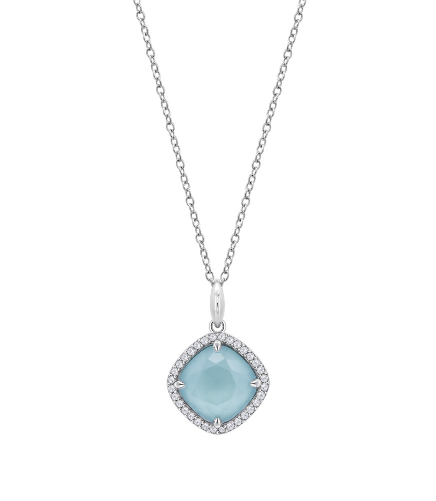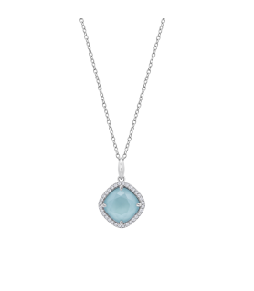 Collar Lotus Silver LP3919-1/2, en plata de ley 925 milésimas, con un colgante con un cristal azul facetado y con 32 circonitas engastadas en blanco de 1.1 mm en el bisel del colgante.