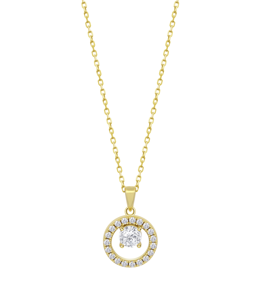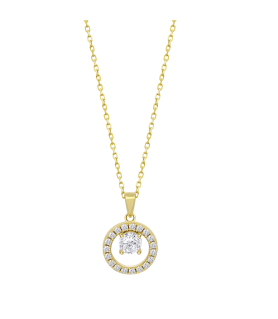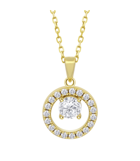 Colgante Lotus Silver LP3080-1/2, en plata de ley con baño de oro amarillo, colgante tipo chatón con una circonita engastada en el centro de 5 mm y en el bisel 19 circonitas de 1,5 mm.