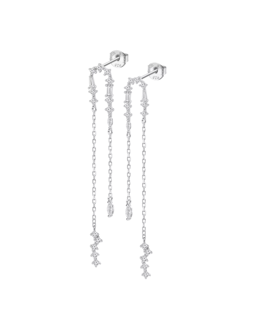 Pendientes Lotus Silver para mujer LP3799-4/1, en plata de ley 925 milésimas, largo, con circonitas de diferentes tallas y engastes y cadenas de diferentes longitudes.