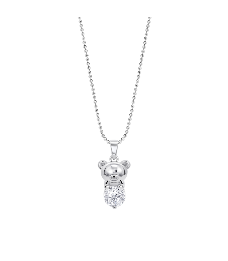 Collar Lotus Silver LP3875-1/1, en plata de ley rodiada, con un motivo colgando en forma de oso con una circonita blanca engastada en el cuerpo del oso con tres garras.