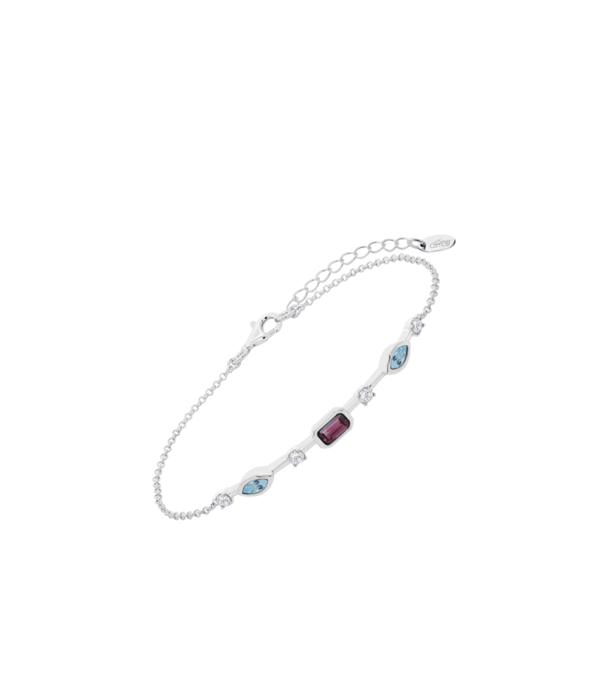 Pulsera Lotus Silver LP3882-2/1, en plata de ley de 925 milésimas, con 4 circonitas engastadas en color blanco de 2.25 mm, otras 2 en color amatista y otra en color azul.