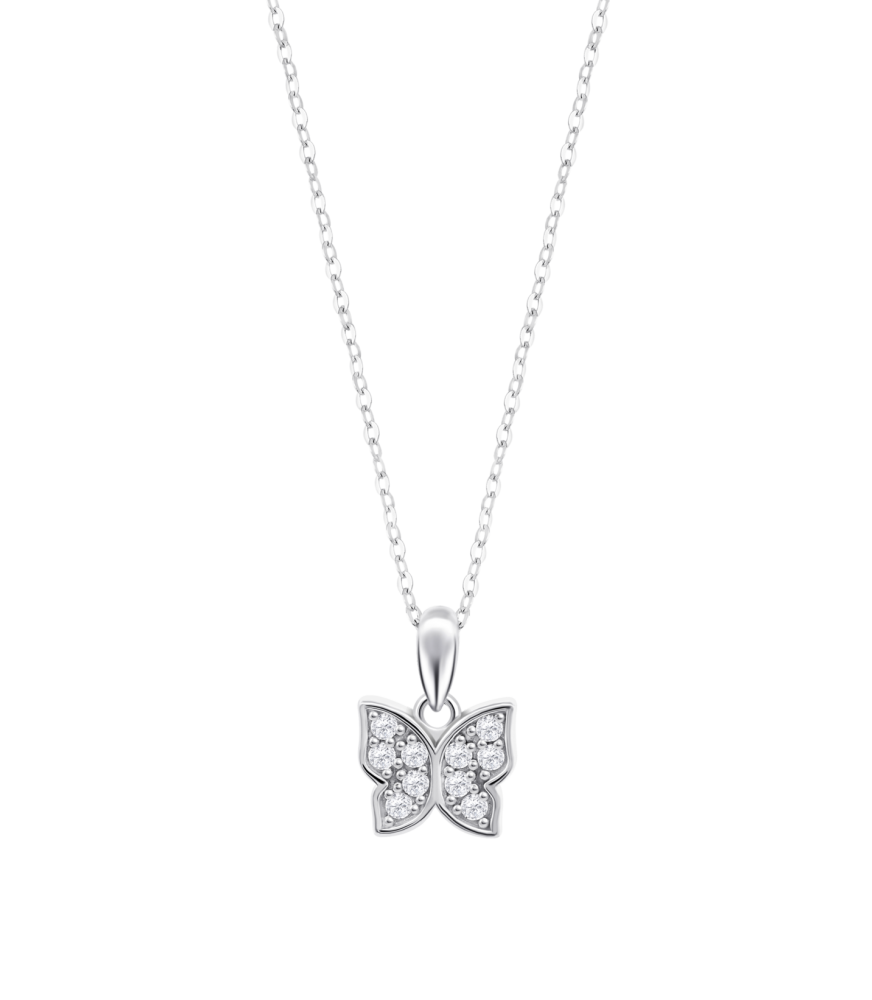 Collar Lotus Silver LP3051-1/1, en plata de ley de 925 milésimas, con colgante con forma de mariposa y circonitas transparentes engastadas.