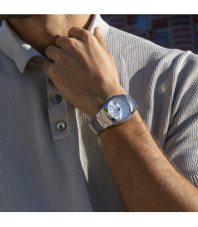 La caja que contiene el mecanismo es de acero, con bisel liso, al mismo color, mide 39 milímetros de diámetro y 12.4 mm de grosor. Los marcadores de las horas son índices en plateado y luminiscentes. Un cristal de zafiro protege a la esfera, la cual es en color plateado. Mientras, el brazalete es de acero, de tipo armys, en mate y brillo, con cierre desplegable con pulsadores. Es sumergible a 100 metros.