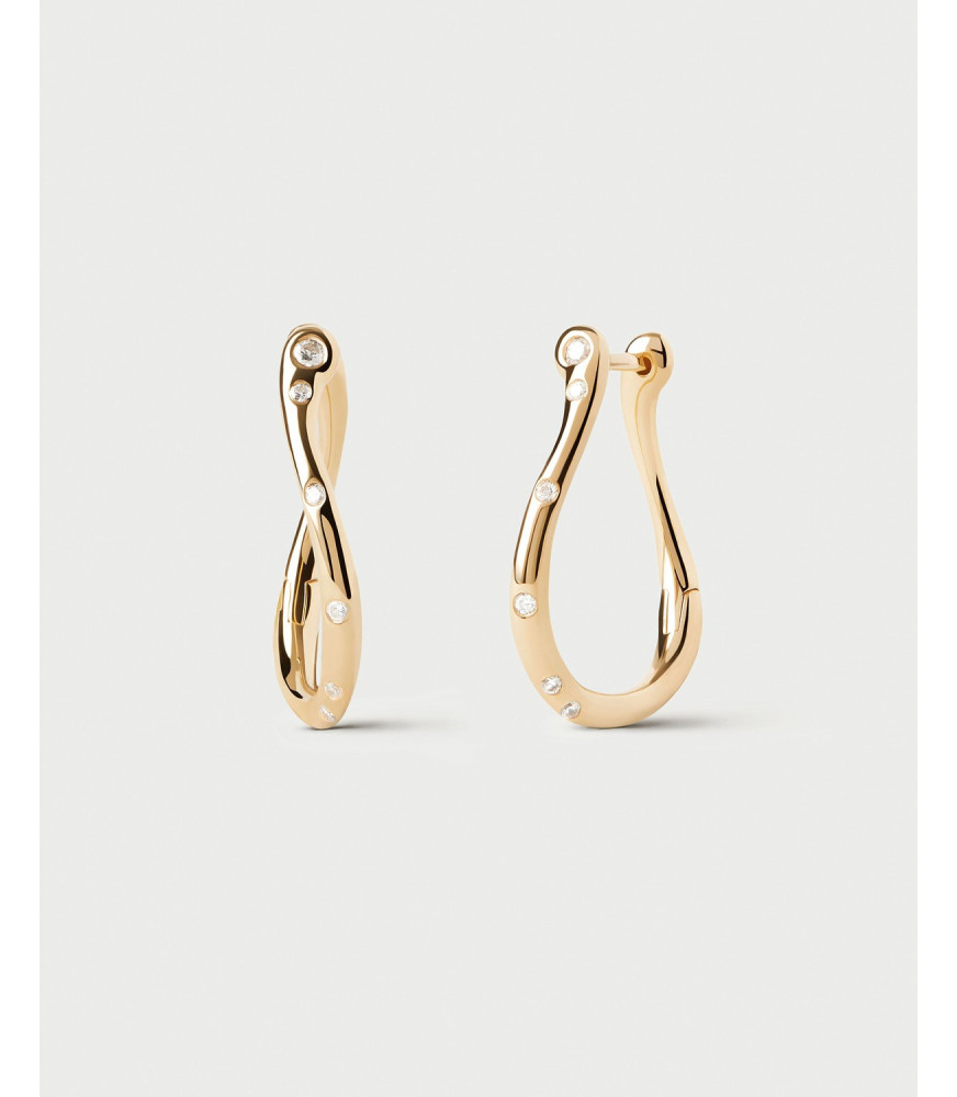 Pendientes Air Mini, P D Paola, COLECCIÓN BÁSICOS DE JOYERÍA, fabricado en plata de ley 925 milésimas con baño de oro de 18K, de tipo aro ondulados pequeños adornados con circonitas blancas.