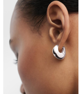 Pendientes Wave, P D Paola, COLECCIÓN BÁSICOS DE JOYERÍA, fabricado en plata de ley 925 milésimas con baño de rodio, de tipo aro esculturales con diseño asimétrico adornados con una circonita blanca.