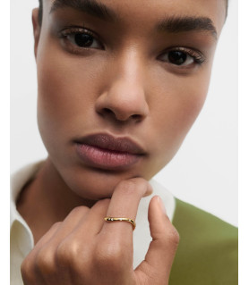 Anillo Air, P D Paola, COLECCIÓN BÁSICOS DE JOYERÍA, fabricado en plata de ley 925 milésimas con baño de oro de 18K, elegante, adornado con circonitas y líneas fluidas.