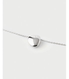 Collar Wave, P D Paola, COLECCIÓN BÁSICOS DE JOYERÍA, fabricado en plata de ley 925 milésimas con baño de rodio, moderno, con colgante escultural adornado con una circonita blanca.