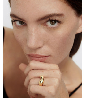 Anillo Aqua, P D Paola, COLECCIÓN AQUA, anillo tipo sello, fabricado en plata de ley 925 milésimas con baño de oro de 18K, abombado, con forma de gota ondulada.