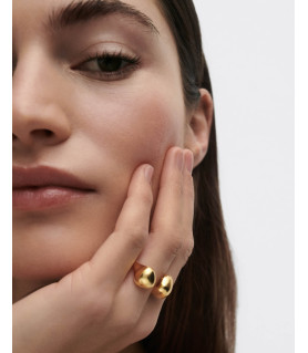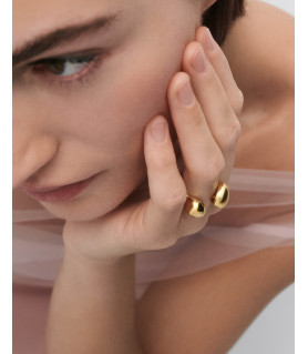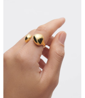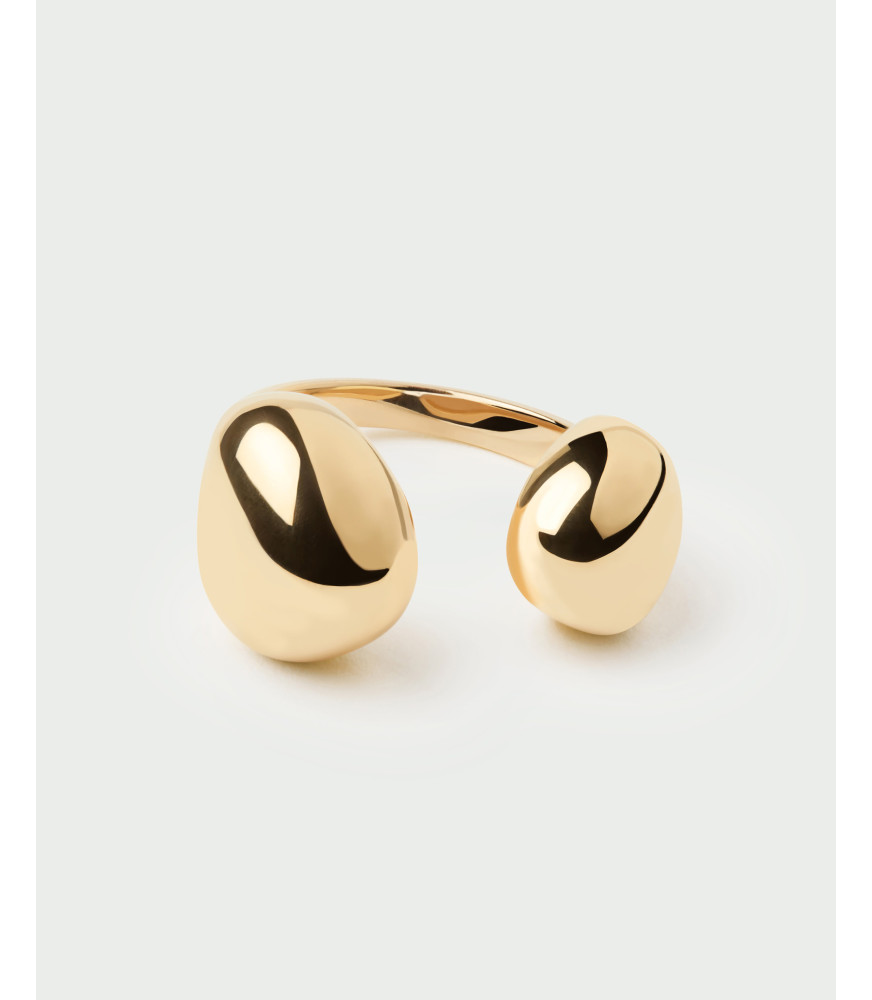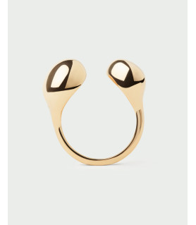 Anillo Gravity, P D Paola, COLECCIÓN DOLPHIN, fabricado en plata de ley 925 milésimas con baño de oro de 18K, anillo abierto escultural con dos gotas fluidas.