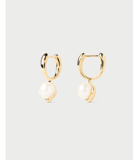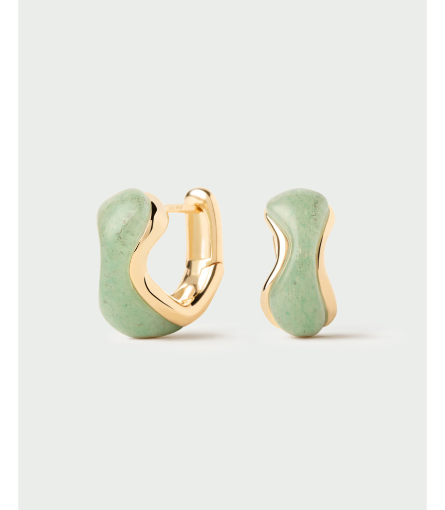 Pendientes Aventurina verde Musa, P D Paola, COLECCIÓN DOLPHIN, fabricado en plata de ley 925 milésimas con baño de oro de 18K, de tipo aro, fluidos y adornados con una piedra verde (aventurina verde) curvada.