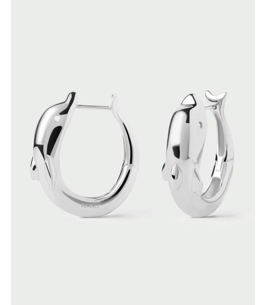 Pendientes Dolphin, P D Paola, COLECCIÓN DOLPHIN, fabricado en plata de ley 925 milésimas con baño de rodio, de tipo aro, esculturales con forma de delfin.