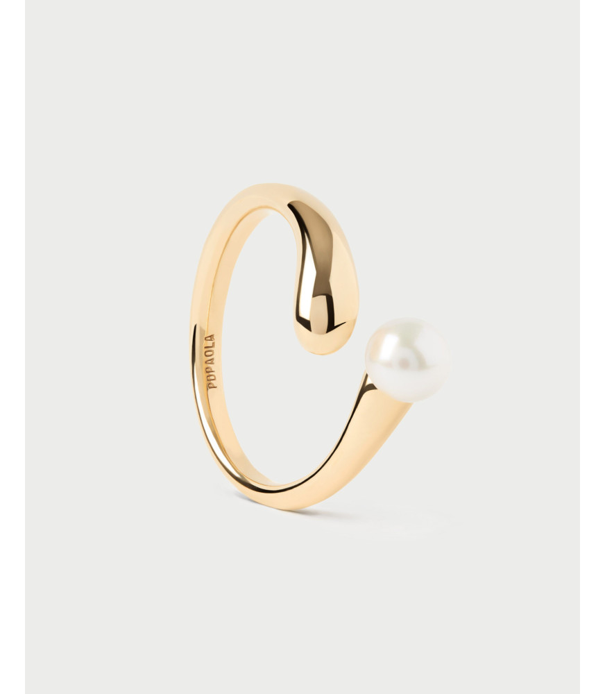 Anillo La Perla, P D Paola, COLECCIÓN LA PERLA, fabricado en plata de ley 925 milésimas con baño de oro de 18K, anillo abierto fluido adornado con perla cultivada de agua dulce.