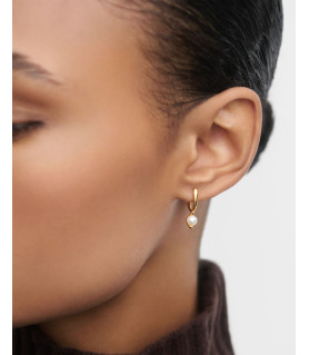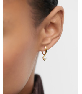 Pendientes aros La Perla Mini, P D Paola, COLECCIÓN LA PERLA, fabricado en plata de ley 925 milésimas con baño de oro de 18K, pendientes de tipo aro, pequeños, modernos, con colgante fluido de perla cultivada de agua dulce.