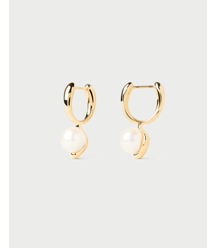 Pendientes aros La Perla, P D Paola, COLECCIÓN LA PERLA, fabricado en plata de ley 925 milésimas con baño de oro de 18K, pendientes de tipo aro, modernos, con colgante fluido de perla cultivada de agua dulce.