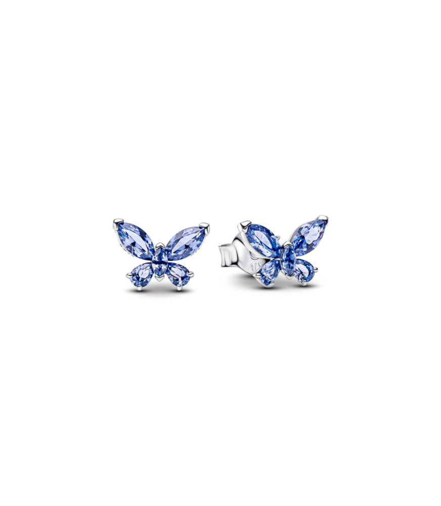 Pendientes de Botón Mariposa Azul, en plata de primera ley constituyen una vibrante adición a tu colección de joyas con sus cristales sintéticos de color azul que imitan la apariencia de un cielo nocturno estrellado.
