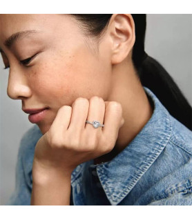 Anillo Corazón en Relieve, en plata de primera ley, el engaste elevado de la circonita cúbica, con forma de corazón, realza el llamativo brillo de la gema.
